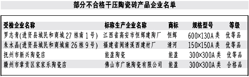 本報訊記者龔漢斌報道:近日,江西省質(zhì)監(jiān)局公布了近期對干壓陶瓷磚產(chǎn)品進行省級產(chǎn)品質(zhì)量監(jiān)督抽查的結果。質(zhì)監(jiān)部門共抽查了51家生產(chǎn)企業(yè)生產(chǎn)的52批次產(chǎn)品,抽樣合格率90.4%。抽查結果表明,本次抽查的陶瓷磚其放射性核素限量指標均達到了標準規(guī)定的要求;但仍有部分產(chǎn)品存在一些問題。 本次抽查的5批次不合格產(chǎn)品中,有1批次產(chǎn)品的破壞強度達不到標準規(guī)定要求,兩批次產(chǎn)品的斷裂模數(shù)指標達不到標準規(guī)定要求。強度性能指標不達標易造成產(chǎn)品達不到應有的承重能力,在使用中產(chǎn)生開裂、破碎或表面缺陷等現(xiàn)象,影響產(chǎn)品的使用壽命和使用性能。有4批次產(chǎn)品的吸水率達不到標準規(guī)定要求。吸水率不達標,將影響消費者的正常使用。 對本次監(jiān)督抽查不合格的產(chǎn)品,省質(zhì)監(jiān)局將依法嚴肅處理。