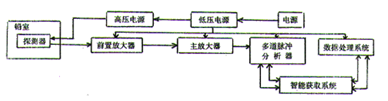 能譜數(shù)據(jù)獲取與處理系統(tǒng):由ADC智能獲取接口和計(jì)算機(jī)組成。探測(cè)器到ADC進(jìn)行�!獢�(shù)轉(zhuǎn)換,智能獲取接口對(duì)ADC的每個(gè)復(fù)換碼進(jìn)行實(shí)時(shí)處理、顯示、數(shù)據(jù)壓縮,并每隔一定時(shí)間將已壓縮的數(shù)據(jù)由接口傳送至計(jì)算機(jī),已進(jìn)行譜顯示的更新,每個(gè)譜的長(zhǎng)度、寬度、停機(jī)方式和條件,起、停都由計(jì)算機(jī)獨(dú)立控制。在測(cè)量過(guò)程中,計(jì)算機(jī)可以停機(jī)或處理其它數(shù)據(jù)。