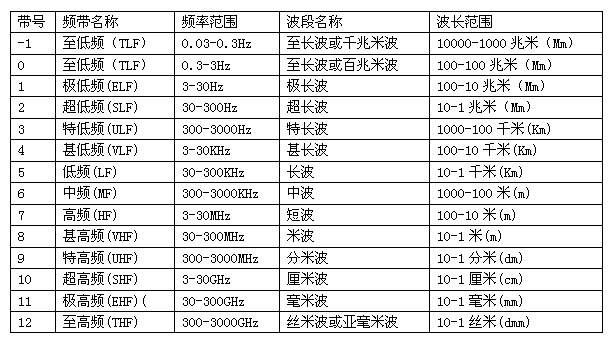 表1 無(wú) 線 電 頻 帶 和 波 段 命 名 表
