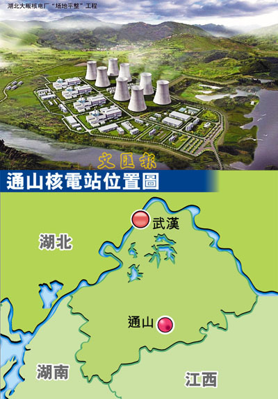 報道說,盡管比較結(jié)果尚未公布,但三省的競爭已呈白熱化趨勢:湖南正在研究選址的可行性;江西選址在三個月前通過了地質(zhì)調(diào)查成果驗收;湖北則在年初與中國電力投資集團簽署協(xié)議,高調(diào)宣布共同開發(fā)核電項目,而耗資逾8000萬元的核電站專用公路已于3月開工興建,預(yù)計明年9月竣工。